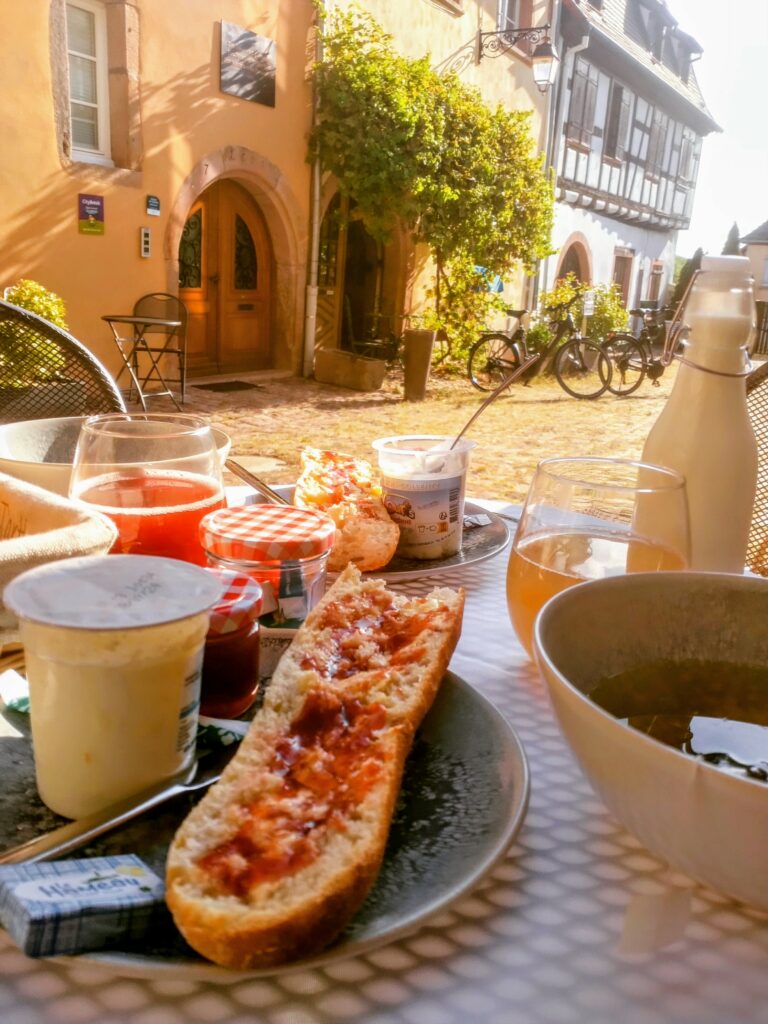 Nos petits-déjeuners sont composés pour une personne : d’une viennoiserie (croissant), une demie-baguette de pain, beurre, confitures locales, un yaourt nature, boisson chaude (café, thé ou chocolat), 1 jus de fruit. Le petit-déjeuner est proposé au prix de 12 euros par personne.